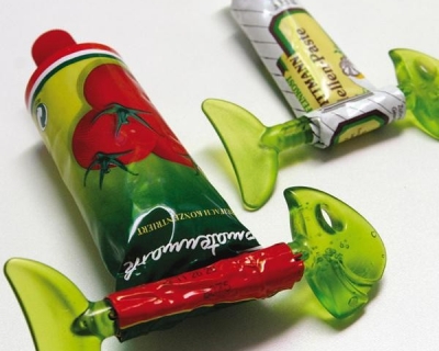 Для экономных и расчетливых Плюшкиных русский интернет-магазин enjoy-me.ru предлагает простую и гениальную штуковину с говорящим названием – выдавливатель для тюбиков «Последняя капля». Выдавливатель выпускается в прикольной форме рыбного скелета и нескольких цветовых решениях. Произведено приспособление из суперпрочного переработанного пластика. Стоит удовольствие всего 350 рублей.