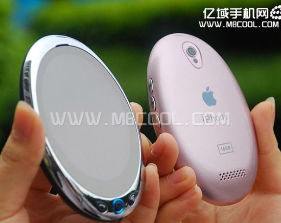 Лучшие умы китайского клонотворчества возмутились строгими и однообразными формами оригинального iPhone, к тому же теперь защищенного страшным патентом. В результате на свет появилась дамская версия телефона, выполненная в изящном овальном корпусе; женский iPhone получил название Leady Apple.