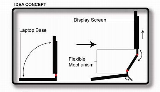 Он представил концепт ноутбука с уникальной конструкцией; дисплей его не только открывается, но и поднимается на определенную высоту, благодаря дополнительной панели. В таком виде лэптоп становится похожим на компьютер-моноблок с монитором на подставке. Красивое и удобное решение, снижающее нагрузку на руки и глаза пользователя.