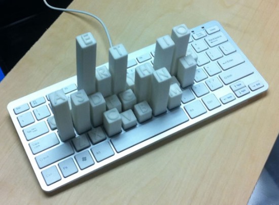 Автор этого шедевра Майкл Кнюфель (Michael Knuepfel). Он нашел в Википедии диаграмму, показывающую частоту использования каждой клавиши и создал клавиатуру, где высота клавиш соответствует частоте использования. Казалось бы, совершенно бесполезную информацию Майкл сумел превратить в произведение искусства. Конечно, подобные предметы вряд ли в скоро времени попадут в Лувр или русский музей, но в коллекцию какого-нибудь чудака, увлекающегося компютерами и гаджетами, точно!