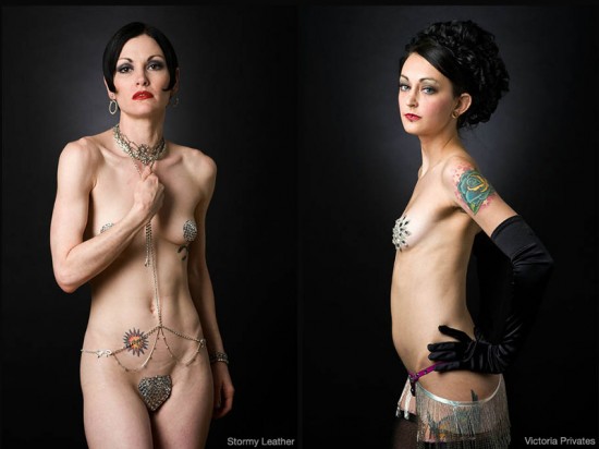 Французский фотограф Леланд Боб (Leland Bobbe) со своей серией «Neo-Burlesque», состоящей из галереи портретов актеров бурлеск-шоу, широко известен в творческой среде. Портреты вышли сочными и удивительными, приоткрывающими дверь в мир кича, мишуры и безудержного сумасшедшего веселья. Глянцевая стилистика добавляет определенных граней этим фотоснимкам. Глянец и бурлеск. Что может быть несовместимее? Особую пикантность привносит эротический подтекст.