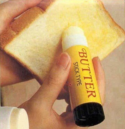 Вот и изощряются все дизайнеры и изобретатели, как умеют во благо комфорта. Для любителей бутербродов с маслом, которым лень отрезать кусочек масла и размазывать его равномерным тонким слоем по хлебу, был придуман шариковый маслонамазыватель. Он работает по принципу шариковых дезодорантов и сводит к минимуму все энергозатраты. Вещь крайне забавная.