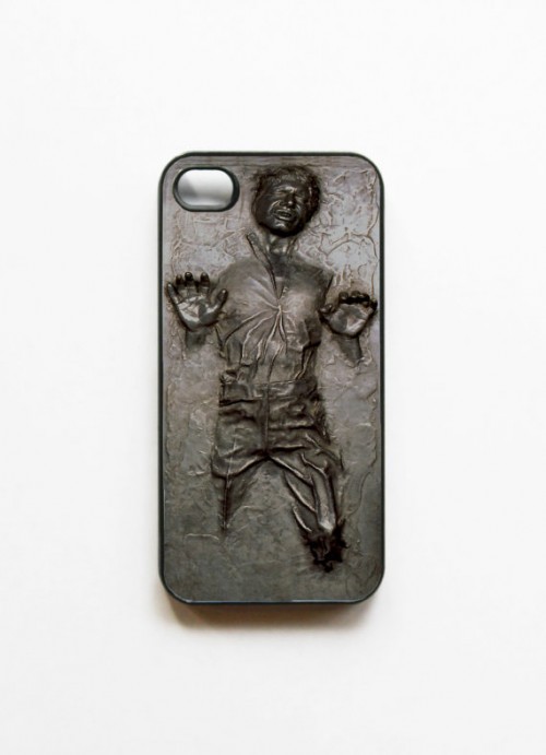 Наверное и этот необычный чехол для iPhone ожидает судьба быстро и легко распродаваемого товара. Ультратонкий, едва заметный чехол создана специально для вашего iPhone модели 4 или 4S и элегантно облегает телефон. Производитель говорит, что его продукция проектируется и создается эксклюзивно им с помощью особой технологии окрашивания, при которой чернила надежно связываются с поверхностью. В результате получается добротный, долгоживущий принт. Конечно, чехол удобен, в нем есть прорези для камеры и для кнопок. Вы, конечно, можете предположить, что фигурка Хана Соло будет мешать складывать телефон, например, в карман, но, вы удивитесь, изображение абсолютно плоское. Иллюзия объемности создается при помощи специальной техники нанесения краски. Довольно неординарная вещица, неправда ли?