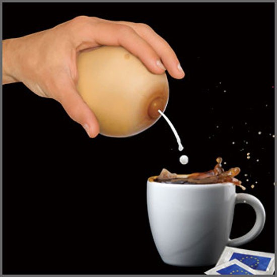 Яркий пример этому – Игрушечная женская грудь-молочник. Если вы хотите подарить что-то необычное человеку со здоровым чувством юмора, дарите ее. Она предназначена для смелых девушек, которые хотят подарить своим парням нечто особенное и запоминающееся, а не очередные носки и пену для бритья. Кроме того, с помощью этой штуковины можно посмешить и порадовать свою беременную жену. Уникальный молочник выполнен в виде очень натуральной упругой женской груди с соском, из которого, собственно, и предлагают наливать молоко в чай или кофе. Грудь выглядит вполне аутентично, да и на ощупь весьма приятна. А ее придется основательно потискать, чтобы налить молочка. Молочник может, конечно, показаться пошловатым, но давайте избавляться от комплексов!