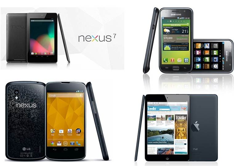 Если не смущает, то посмотрите на картинку еще внимательнее, что вы видите на ней? Это пресс-фото, которые публикуются на официальных анонсах устройств, в данном случае это Google Nexus 7, Samsung Galaxy S, Google Nexus 4 и Apple iPad mini. Все четыре устройства представлены практически в одном виде: фото фронтальной панели, фото тыльной стороны и фото в профиль. Одно устройство стоит вертикально, а второе привалилось к нему под углом. Внимание, вопрос: почему же они при этом имеют одну высоту?