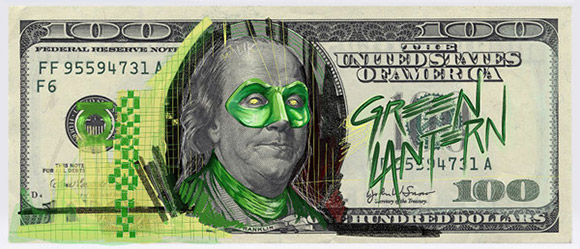 Американский дизайнер Аслан Малик (Aslan Malik) решил попрать в очередной раз главную святыню Нового света – зеленый американский доллар, выпустив проект Лига Справедливости Америки (Justice League of America ). В нем с определенной долей юмора на реальных банкнотах портреты знаменитых президентов США, гордость, честь и совесть нации, с легкой руки художника карандашным (фотошопным) росчерком превращены в знакомых с детства героев студии DC Comics: Бэтмен, Флэш, Супермен, Зеленый Фонарь и Чудо-женщина (президенту Джексону с 20-долларовой купюры почему-то повело меньше всех).