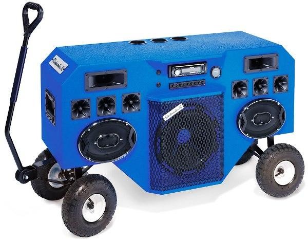 Организуя шумную вечеринку под открытым воздухом, непременно следует позаботиться о хорошей музыке и громком звуке. И если в первом случае все зависит от вкусов устроителей мероприятия и приглашенных гостей, то во втором необходимо нечто убойное и фундаментальное, например, огромный аудиоприцеп на колесах, оборудованный полным комплектом колонок (восемь «пищалок», два крупноформатных динамика для средних частот и два сабвуфера). Правда, стоит этот монстр целых четыре тысячи долларов.