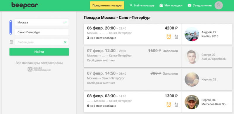 В России начал работу сервис поиска попутчиков BeepCar