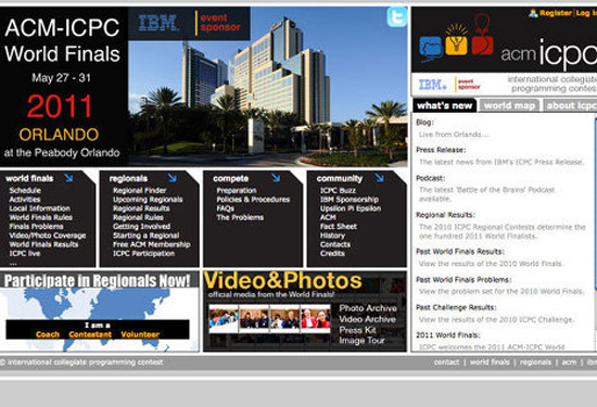 Вчера завершился чемпионат мира по программированию, проходивший в США (Орландо, Флорида). Проходит он примерно так: команде, состоящей из трех человек, предоставляется компьютер и выдается несколько сложных задач. Участникам нужно за определенное время написать программы для их решения. Одна из команд-участниц от России из Санкт-Петербургского государственного университета заняла первое место в одном из соревнований и взяла золотую медаль (всего на чемпионате разыгрывалось четыре таких медали).