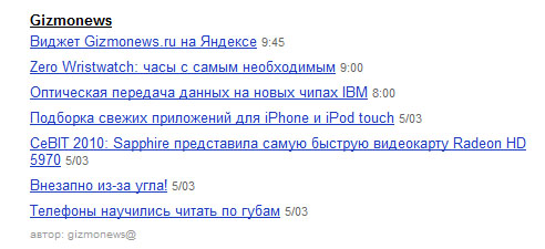 Виджет Gizmonews.ru на Яндексе