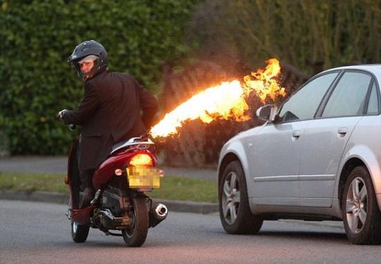Gizmonews.ru рассказывал недавно своим читателям о домашнем огнемёте для уничтожения комаров. А вот некто Колин Фурц (Colin Furze) пошёл дальше – он придумал и сконструировал огнемёт для своего скутера. Огнемёт способен выстреливать полутораметровую струю пламени, направленную назад от скутера.