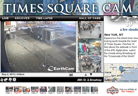 Тревогу поднял ветеран войны во Вьетнаме, продающий на площади туристам футболки. Он увидел белый дым, исходящий из припаркованного внедорожника Nissan, почувствовал запах пороха и тут же обратился к ближайшему конному полицейскому. После эвакуации людей полиция с помощью робота-сапера обезвредила бомбу. Интересен тот факт, что взрыв «в прямом эфире» могли увидеть тысячи людей по всему миру – изображение с Таймс-сквер круглосуточно передаёт в Интернет установленная на площади веб-камера. Теперь же изображения пустынной площади, снятые этой камерой, обойдут все мировые журналы и газеты.