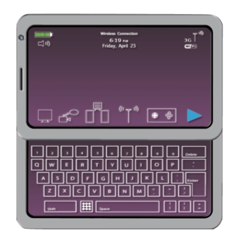 Телефон выполнен в форм-факторе горизонтального слайдера, на нижней половине которого вместо привычной физической QWERTY-раскладки располагается сенсорный дисплей, который может принимать вид виртуальной клавиатуры либо инструментом для управления мультимедиа или игровыми приложениями. Кроме того, имеется сканер отпечатков пальцев, разъемы (micro?)USB и 3,5 мм; а также пара камер: фронтальная для видеозвонков и основная, 10-мегапиксельная для съемки фото и видео.