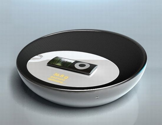 Зачем док-станции для плеера весы? Чтобы взвешивать плеер! А зачем, черт возьми, взвешивать плеер? Чтобы узнать его модель. Дизайнер Йонь Сань Юн (Young Sang Eun) справедливо рассудил, что каждый плеер оснащен собственным звуковым модулем, который искажает оригинальный звук по-своему. И потому в каждом случае требуется собственный алгоритм коррекции.
