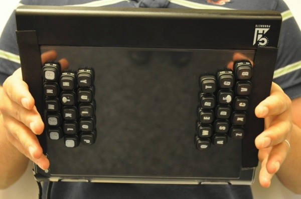 Инженеры лаборатории представили прототип планшетного компьютера, оснащенного клавиатурой на задней части корпуса. Такое решение позволяет эффективно работать с текстом при форм-факторе моноблока: раздельная клавиатура повторяется на экране компьютера, что позволяет пользователю ориентироваться в кнопках. К такой конфигурации пользователь привыкает довольно быстро, и в конечном итоге скорость набора текста становится сравнима со скоростью работы на обычной клавиатуре.