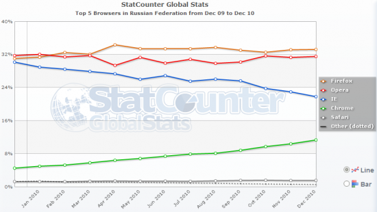 Самым популярным браузером в мире, как известно, является Internet Explorer. Это объясняется просто: он по умолчанию является компонентом самой популярной в мире ОС Windows. Вот только в России это не так, отечественные пользователи уже давно открыли для себя альтернативные средства просмотра интернет-страниц. Как же распределилась популярность браузеров в течение 2010 года?