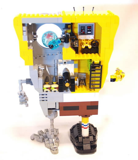 Наполовину это прекрасный, милый, желтенький Спанч Боб, знакомый и привычный всем, а на другую половину он…псевдо-Терминатор! Эффект от созерцания (и собирания, прежде всего!) этого чуда прямо-таки сногсшибательный: невозможно отвести глаз. Выглядит очень уж необычно и приятно. А исполнение мелких деталей достойно аплодисментов. Внутри Спанч Боба еще крохотный домик с лесенками, окошками и прочим. Все сделано очень качественно, как, впрочем, и обычно для LEGO. Кто знает, может, Губка Боб – маскировка Терминатора?