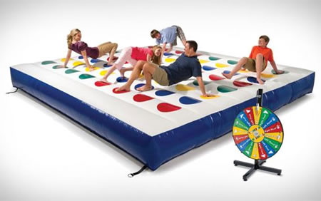 Огромный твистер представляет собой нечто вроде батута размером 5x5x5 м с огромным количеством разноцветных полей. Игровое поле может выдержать дюжину человек без всякого Щерба и осчастливить одновременно большое количество людей. Однако остается непонятным: кто крутит колесо и говорит задания, если все играют? Да и стоит игра пока недешево – целых $2 000!