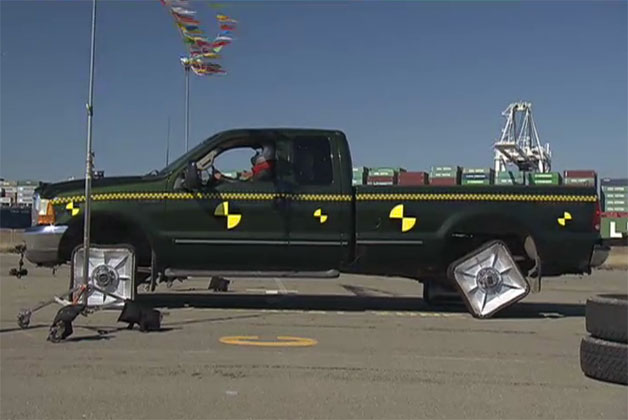 Положить конец всем сомнениям решили знаменитые «Разрушители легенд». Эти ребята, как всегда, выложились по полной, они изготовили полностью совместимые колесные диски и установили их на несчастный пикап Ford F-Series. Правда, при этом пришлось пожертвовать комфортом и использовать самодельные тонкие покрышки, поскольку производители авторезины как-то предпочитают обходиться без квадратных форм.