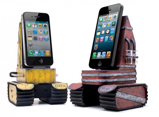 Вот, например, оригинальная зарядка для iPhone вместо обычного USB-шнура дорогого стоит, ведь автоматически позволяет выделиться из толпы хипстеров и офисного планктона. Зарядка в виде танка с настоящей маскировочной расцветкой и брутальными гусеницами сразу позволит угадать во владельце тонкую ранимую душу и богатый внутренний мир. Шутка, конечно, хотя одно другому все-таки не мешает. Зарядку для iPhone в виде танка придумал и воплотил в жизнь сингапурский дизайнерский бренд PHU. Танчики сделаны из стали и высокотехнологичного пластика. iPhone удобно устанавливается на подставку, а все лишние проводочки прячутся в заднюю панель танка, что, конечно, помогает лучше организовать пространство на рабочем столе. Довольно интересная вещь для мальчиков.