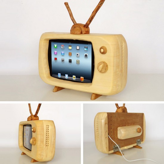 Компания valliswood представила на рынок док-станцию, от которой очень сложно отвести взгляд. Она сделана в виде старого телевизора. Причем, сделана вручную мастером из Хорватии по имени Марио. Настоящий качественный хэнд-мейд. Материал, из которого изготовлена оригинальная док-станция для iPad, — настоящее дерево. Но защитники окружающей среды могут остудить свой пыл и не лезть с транспарантами на баррикады. Ни одно дерево не погибло из-за этой док-станции. Сырьем послужили либо сломавшиеся ветви, либо выкорчеванные погодными катаклизмами стволы. Так по крайне мере утверждают производители. В «телевизоре» есть отверстия, через которые прекрасно проводится звук вашего устройства. Да и шнур для подзарядки прекрасно вписывается в общий дизайн.