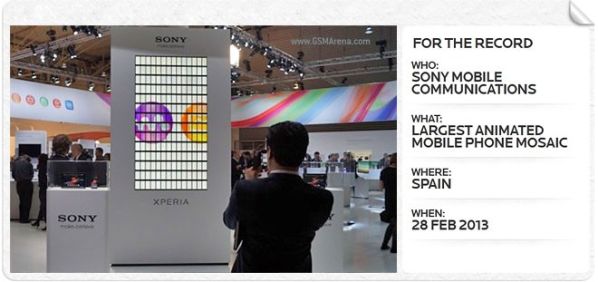 Компания Sony со своим смартфоном модели Xperia ZL попала в Книгу рекордов Гиннеса. Они изготовили большое электронное табло из смартфонов этой модели, синхронизированных между собой. Для изготовления табло было использовано 196 мобильников, их выложили в массиве 14×14 единиц. Учитывая, что разрешение экрана на смартфоне Sony Xperia ZL составляет 1080×1920 точек, суммарное разрешение табло получается 406 мегапикселей или 26880×15120 точек. И правда, такой показатель вполне достоин того, чтобы оказаться в Книге рекордов Гиннеса.