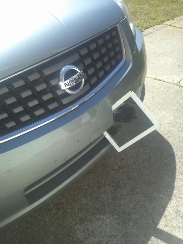 Бедный Нисан стал жертвой забывчивости истинного владельца iPad. Машину жалко, а вот планшет – нисколько. Алекса Криса, как написано в ее блоге на Facebook, ехала по своим делам и увидела, что в ее машину что-то летит. Не ощутив удар, она продолжила движение и лишь спустя какое-то время обнаружила в переднем бампере своей машины намертво застрявший планшет. К счастью, гаджет продолжал функционировать, и Алексе удалось выяснить номер его владельца. Тот рассказал, что забыл компьютер на крыше своей машины, откуда он и свалился из-за высокой скорости, превратившись в сюрикен. Кстати, снимок, приложенный к данной новости, набрал уже свыше полутора миллионов просмотров на Facebook.