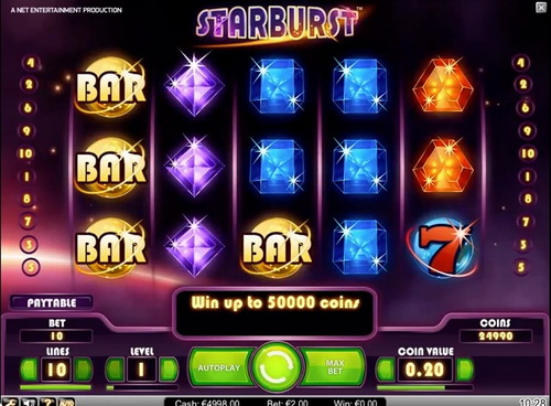 Игровой автомат для мобильных устройств Starburst Touch является по-истине ярким и увлекательным видео слотом. Игроки будут приятно поражены блеском драгоценных камней, появляющихся на игровых барабанах, а новые «дикие» символы приятно порадуют любого любителя азарта. Так, вместо традиционных «диких» символов, в игре есть специальный Starburst Wild, который представлен изображением восьмиконечной звезды. Он может появляться на барабанах со второго по четвёртый.