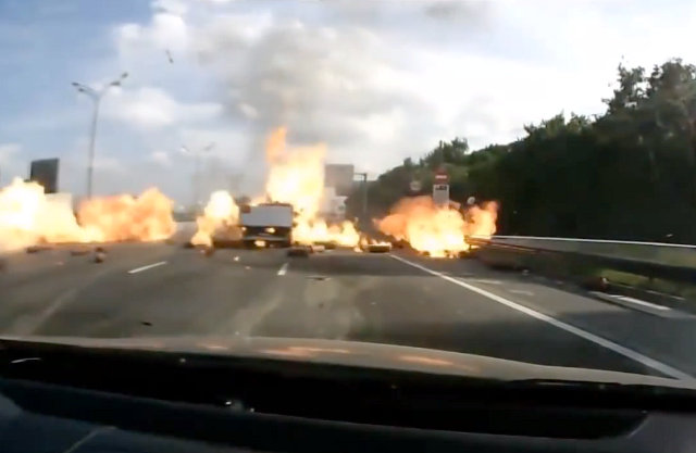 Кроме шуток: взрыв был нереально мощный, но не пострадал ровным счетом никто. Речь идет, естественно, о людях, но причиной взрыва стало столкновение двух автомобилей, так что, по сути, пострадали только они. И еще немного о русских: инцидент снимало сразу несколько автомобилистов на свои видеорегистраторы, и кто-то даже не побоялся подбежать поближе, чтобы получить более удачные кадры. Эту страну не победить!
