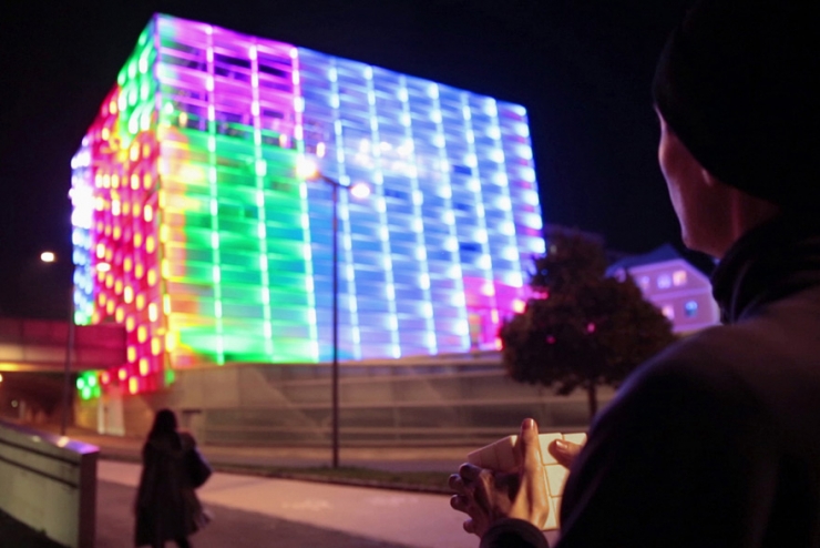 Гуляя по городу Линц в Австрии, вы можете увидеть немало красот. И вряд ли вы пройдете мимо гигантского светящегося кубика Рубика, который обязательно попадется на пути. Проходя мимо здания Ars Electronica, именно такой кубик вы и увидите. Мало того – можно даже приобрести маленький, белый аналог кубика, и устроить световое шоу рядом с большим кубиком Рубика.