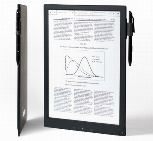 Е-ридер Sony Digital Paper, выделяющийся своими большими габаритами, оценен в 1100 американских долларов. Экран модели получил диагональ 13,3 дюйма, и основывается он на электронных чернил, то есть он физически не может быть цветным. Оговоримся, что цветные экрана на базе e-ink уже существуют, но их качество пока что не очень высокое, поэтому Sony не готова оснащать ими свою продукцию. Электронная книга Sony Digital Paper ориентирована на корпоративных клиентов, а также на студентов, располагающих большим запасом денег. Разрешение экрана составило 1600х1200 пикселей, плюс имеется оптический тачскрин. Он реагирует на прикосновение пальцев и дигитайзера, который входит в комплект поставки.