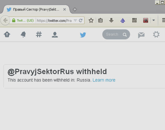19 мая популярный сервис микроблогов Twitter заблокировал доступ к странице «Правого сектора» на территории РФ, то есть при попытке зайти на блог одноименной украинской организации появляется сообщение об ограничении доступа к учетной записи.