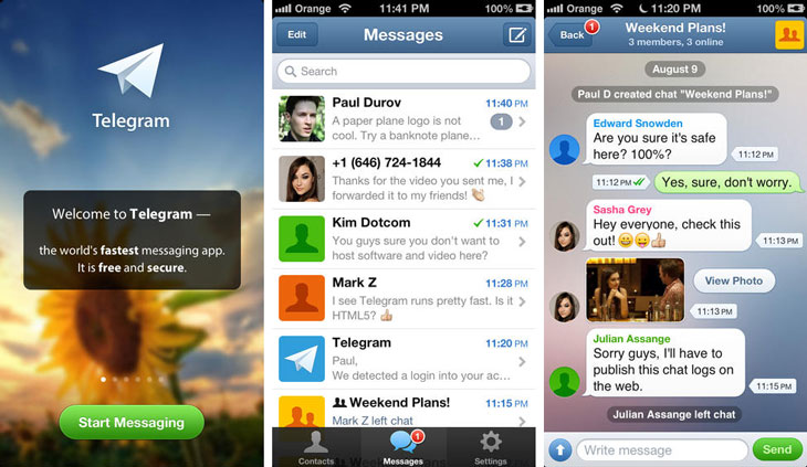 Мобильный мессенджер экс-владельца ВК набрал 35 тысяч пользователей. Мобильное приложение Telegram было названо самым быстроразвивающимся стартапом 2014 года. Наибольшей популярностью новое приложение пользуется у жителей Латинской Америки, Индии и стран Персидского залива. При этом изначально Telegram был рассчитан не на российскую аудиторию и потому он имеет только англоязычную версию.