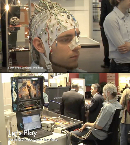 На завершившейся недавно выставке CeBIT был продемонстрирован интерфейс, позволяющий управлять компьютером силой мысли. Прямо на выставке была организована демонстрация: голову человека опутали сетью датчиков и он играл в Пинбол (настоящий, а не компьютерный), используя для управления игрой только собственные мозговые импульсы.
