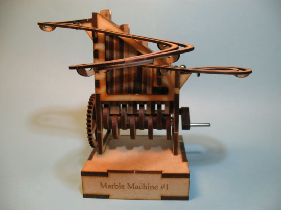 Есть вещи, на которые можно смотреть вечно. Помимо огня и воды, этим свойством обладают и некоторые рукотворные вещи. Например, вот этот вырезанный лазером петлистый замкнутый трек, по которому постоянно бегают шарики. Нужно лишь крутить ручку и поддерживать движение подъемного механизма.